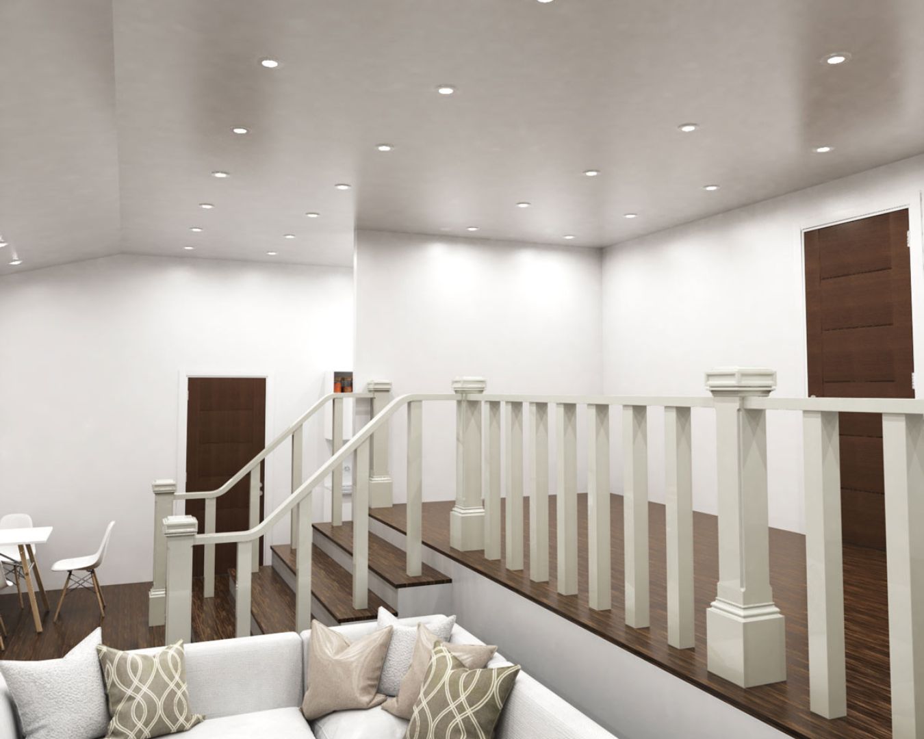 A flat, glaring ceiling is a no-no when you have low headroom. Even in small spaces, you want to create depth. And dimmers allow you to adjust the brightness of your lights for tasks, entertainment, or relaxation.