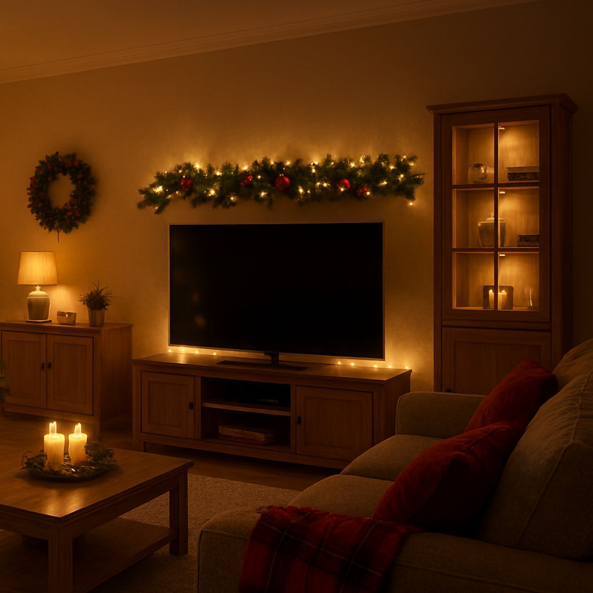 Smart lighting makes the Christmas ambience effortless. With a tap or voice command, your living room can shift from lively to tranquil in seconds.