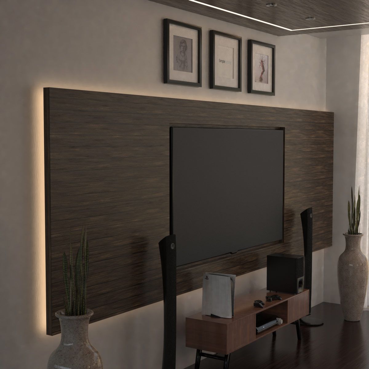 Picture this: A floating media wall softly backlit with neutral white LED strips, enhancing textures on stone or timber finishes.