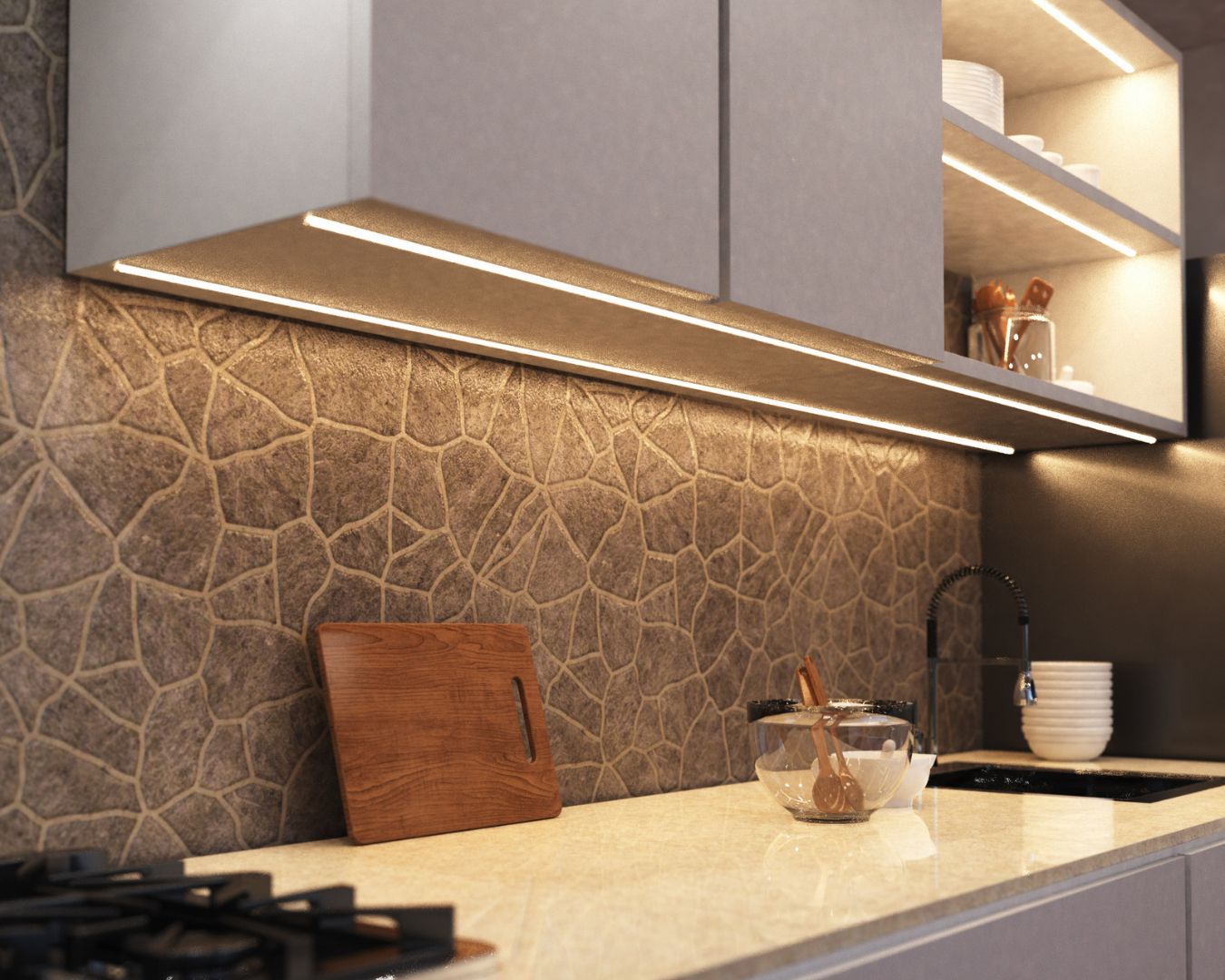 Use case example: A single-channel warm white strip under a kitchen cabinet provides uniform illumination controlled by a simple dimmer.