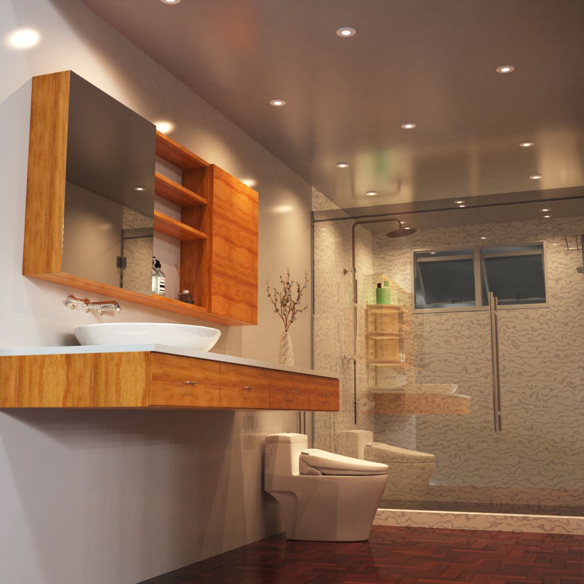 - Spa Mode: Warm backlighting, dimmed downlights, gentle music cue.